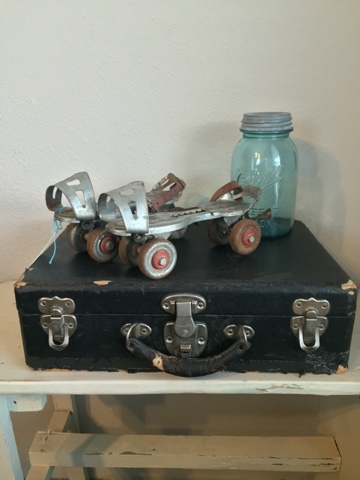 That handsome case is actually a vintage radio. It doesn't play music anymore, but doesn't it make you want to wink and flirt with it just a little? Those smart clasps, rugged leather handle, with a little wear and roughness; it's like that perfect 5 o'clock shadow in chinos. Perfect for adding height and texture!
